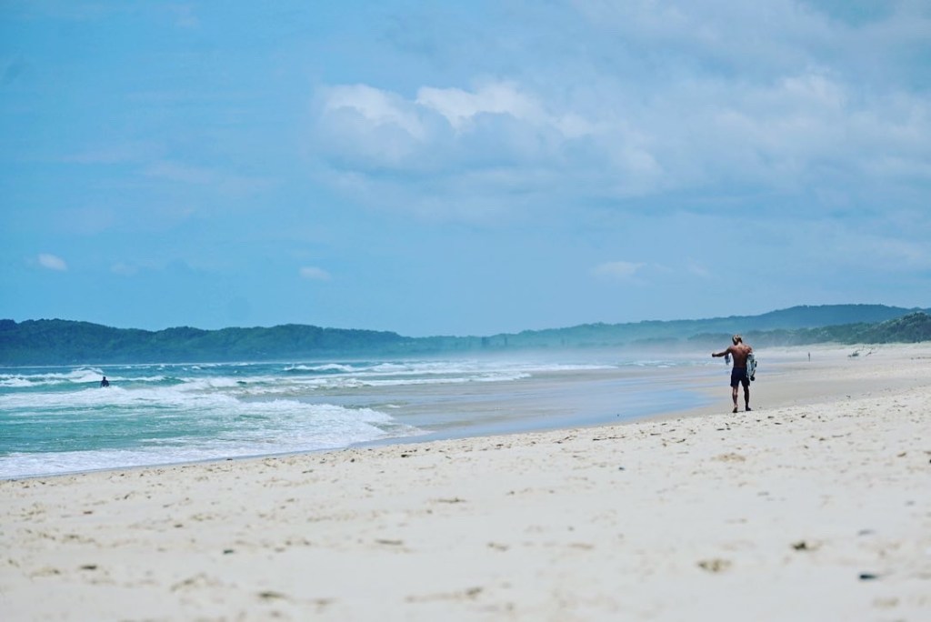 First we went up to the lighthouse to check out the views (including a view of Tallow beach) where at the right time of year you might spot some whales or dolphins in the distance. the lighthouse can be a great spot to watch the sunrise too FYI. After that we went down to Tallow Beach to test out my camera skills on the surfers and to get a bit of sun. Our first time relaxing on the beach, the whole road trip! It was great to just sit and watch people surf and enjoy the blue skies for a while.